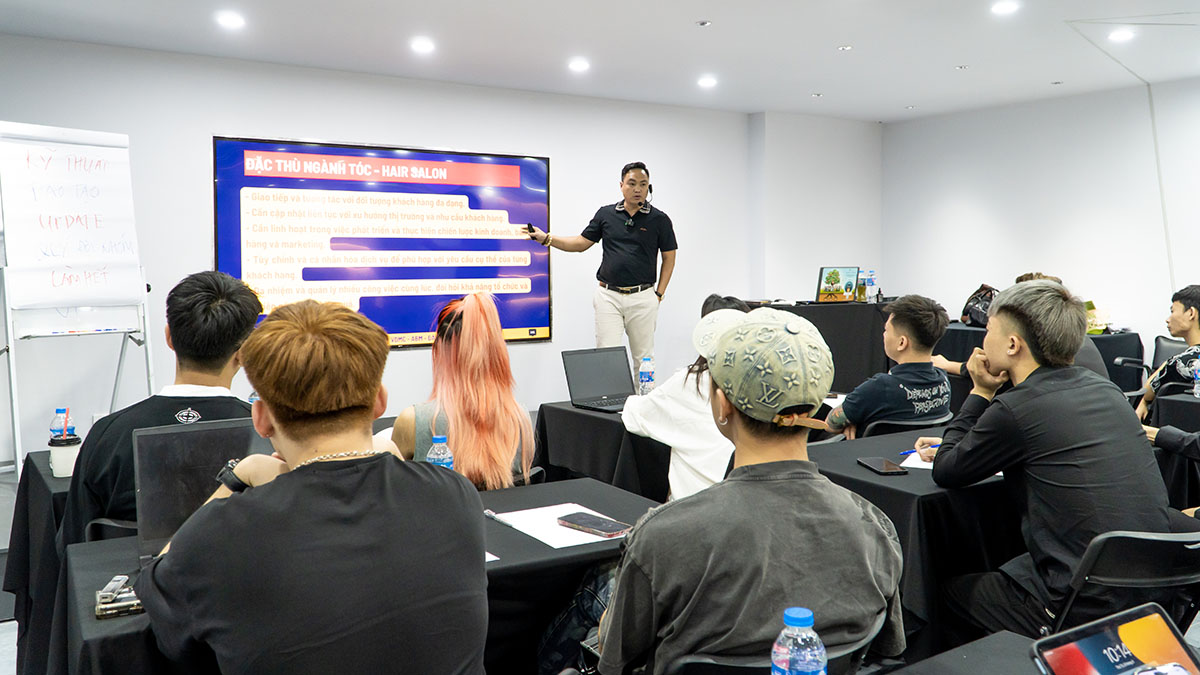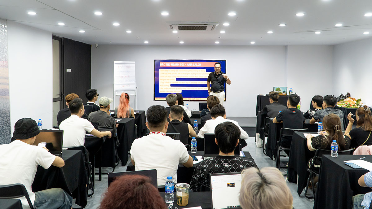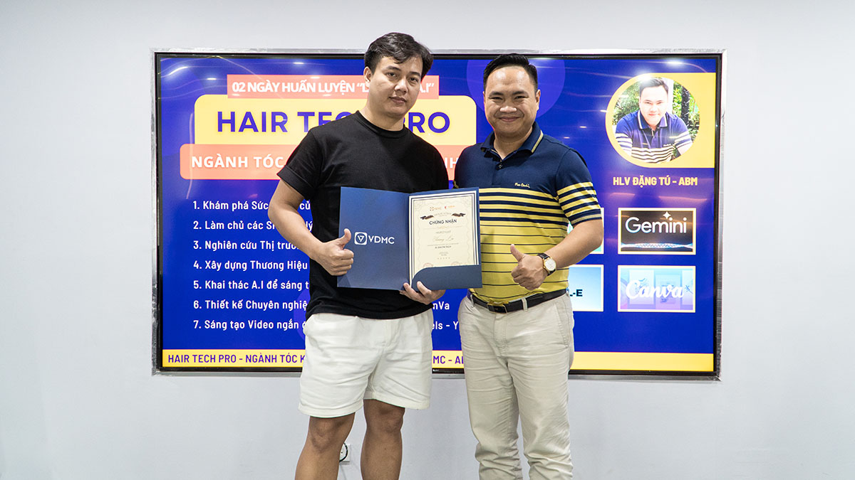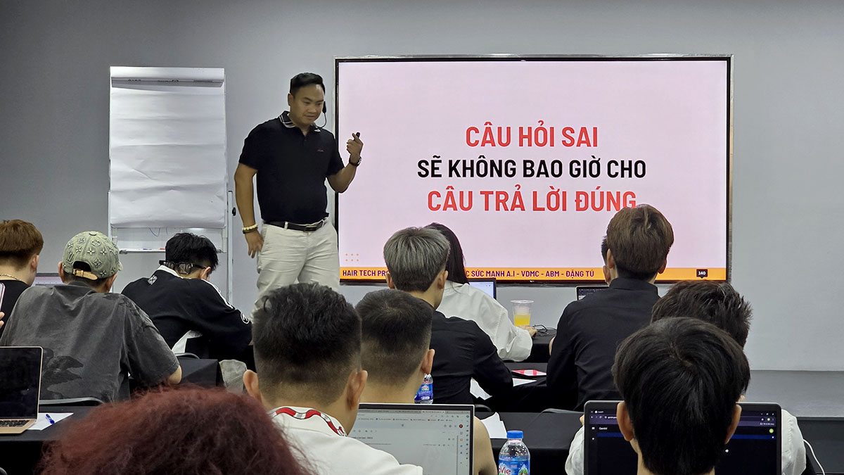 Trong không khí sôi động và chuyên nghiệp, lớp AI HAIR TECH PRO, một sáng kiến đột phá của ABM phối hợp cùng VDMC, đã để lại dấu ấn khó quên trong lòng những Chủ Salon Tóc, các Thợ Tóc danh tiếng, và các Nhà phân phối phụ liệu ngành tóc.